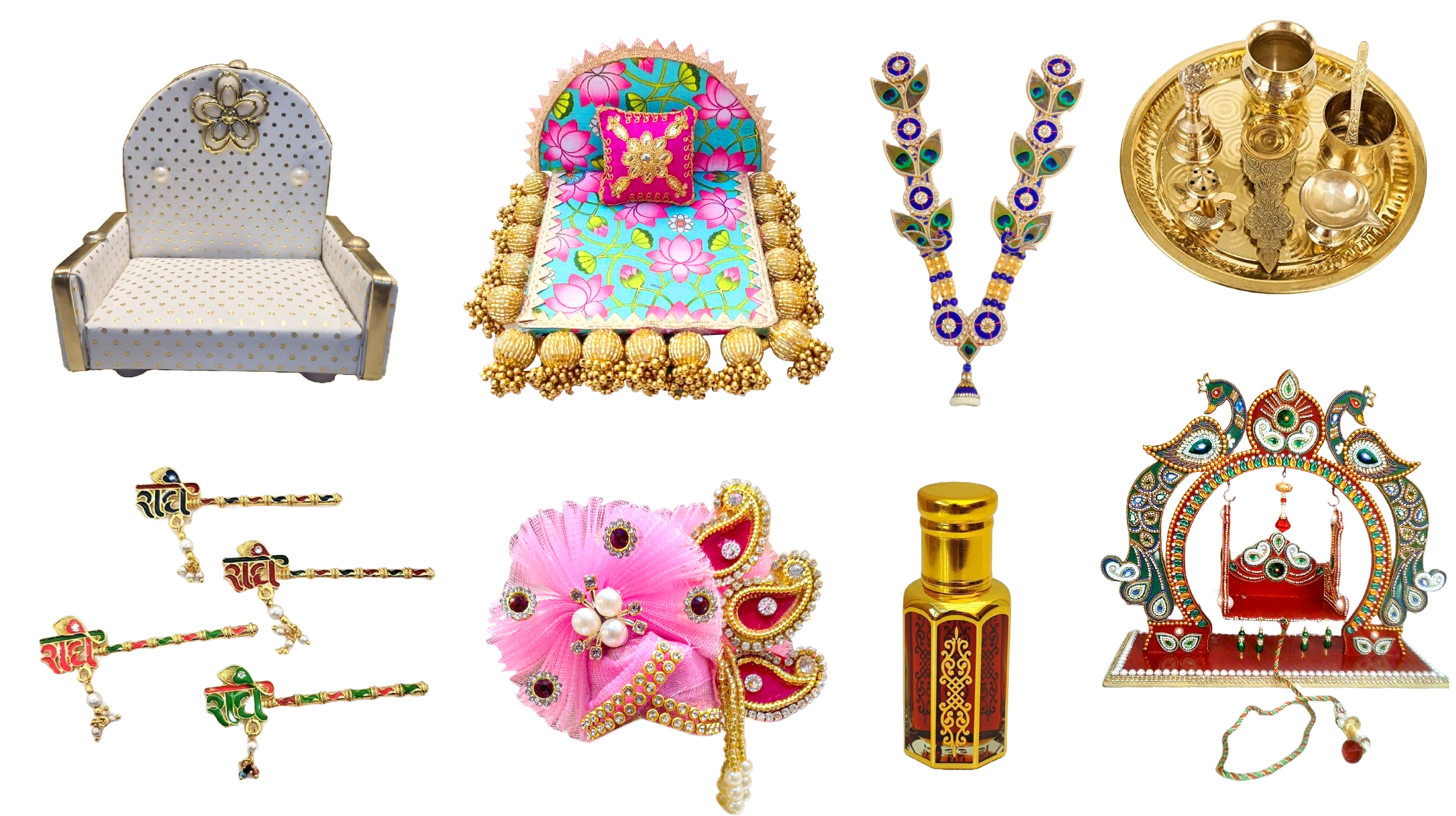 Looking to purchase Laddu Gopal Poshak, Singhasan, Jhula, Pure Tulsi Mala, Chandan, Dhoop Batti, Perfumes/Attar, Mata Charan stickers, Cotton Wicks and more in wholesale quantity?